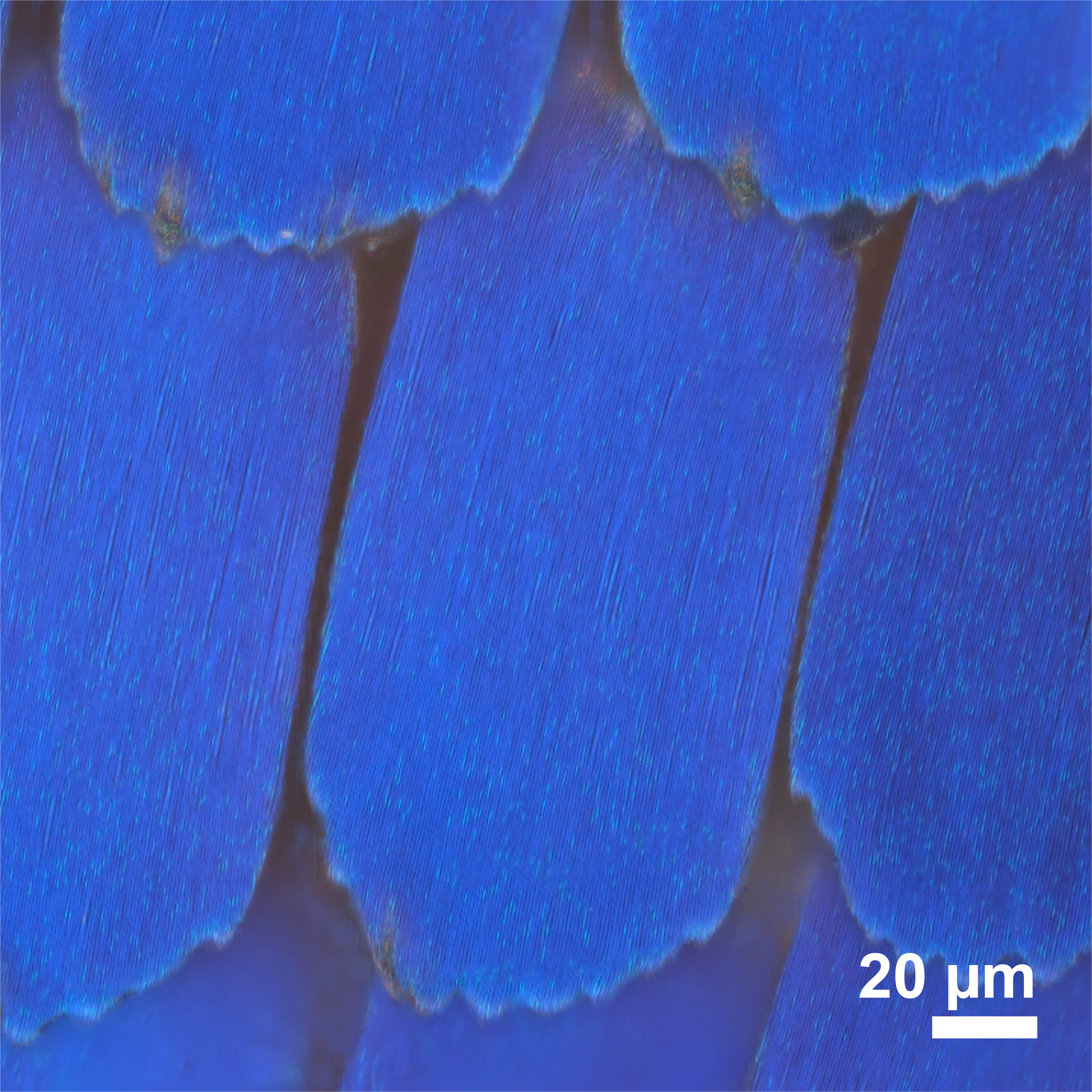 Bright-field reflection image of Morpho butterfly scales